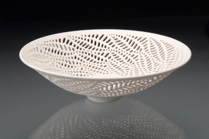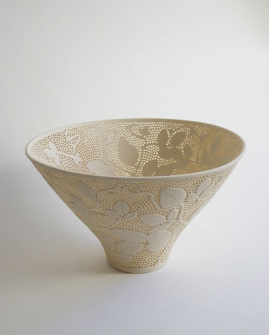 Working with premade cast and thrown vessels in both leather hard and dry stages I will demonstrate techniques of carving and piercing using a variety of available tools both purchased and handmade. Discover easy tips for geometric layout of patterns along with the use of varnish resists to create textured surfaces.
